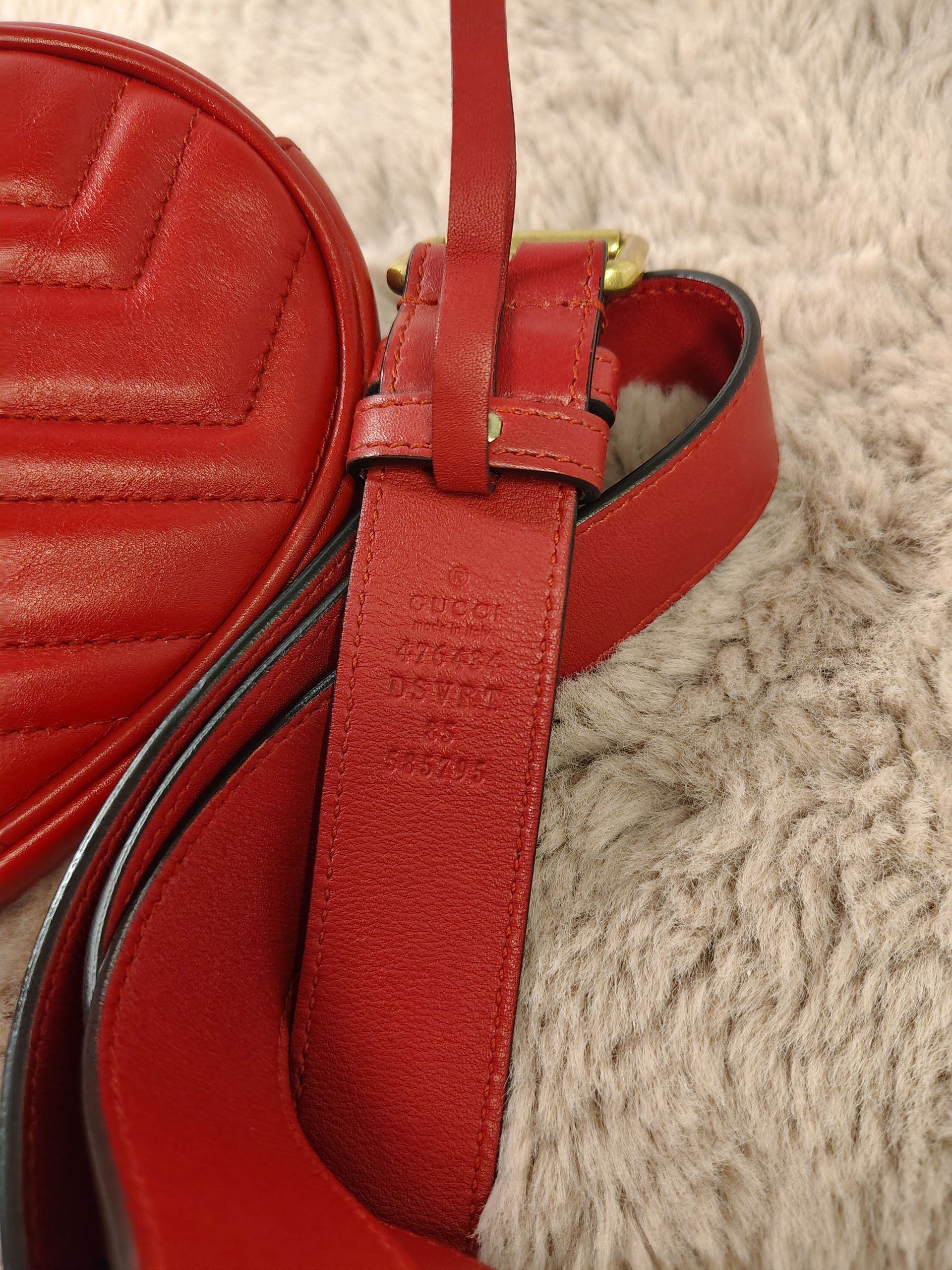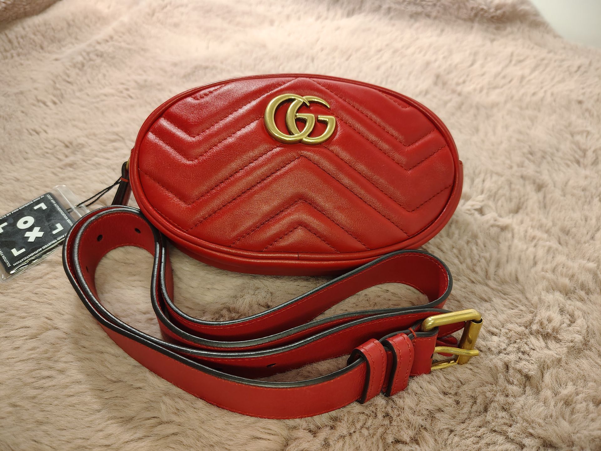 Gucci GG Marmont matelassé leather belt bag in hibiscus red w/ gold-toned hardware
