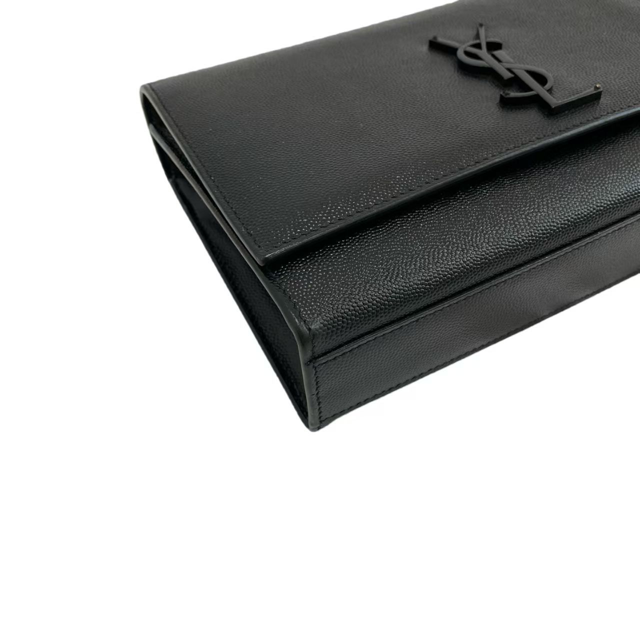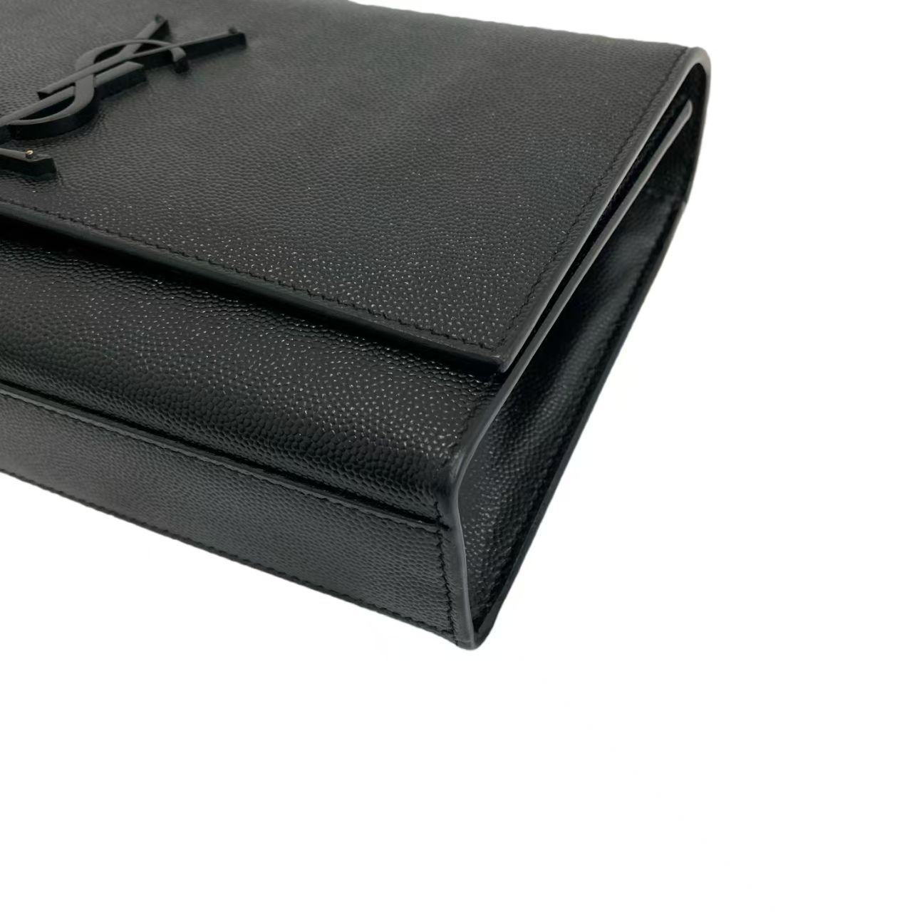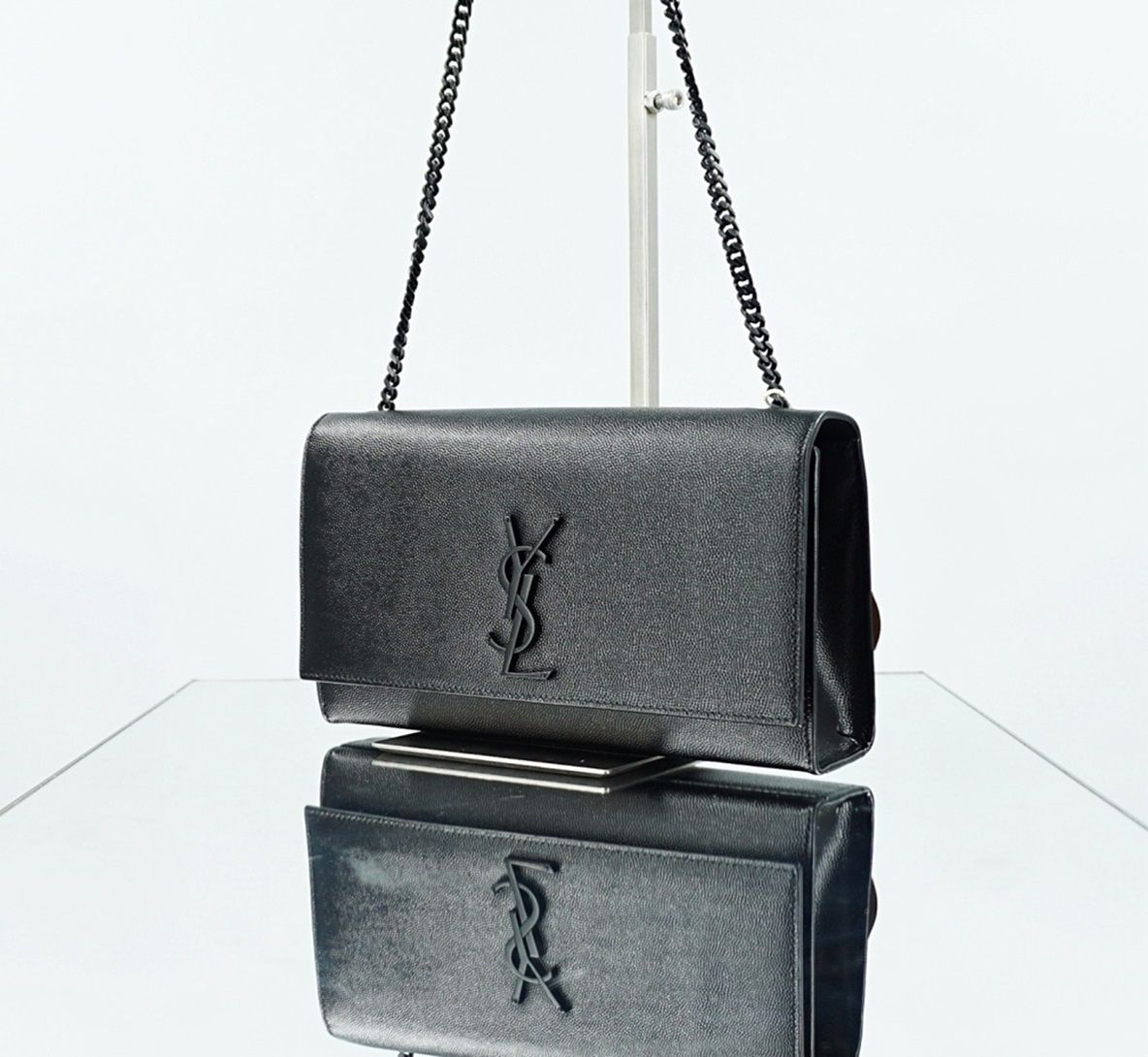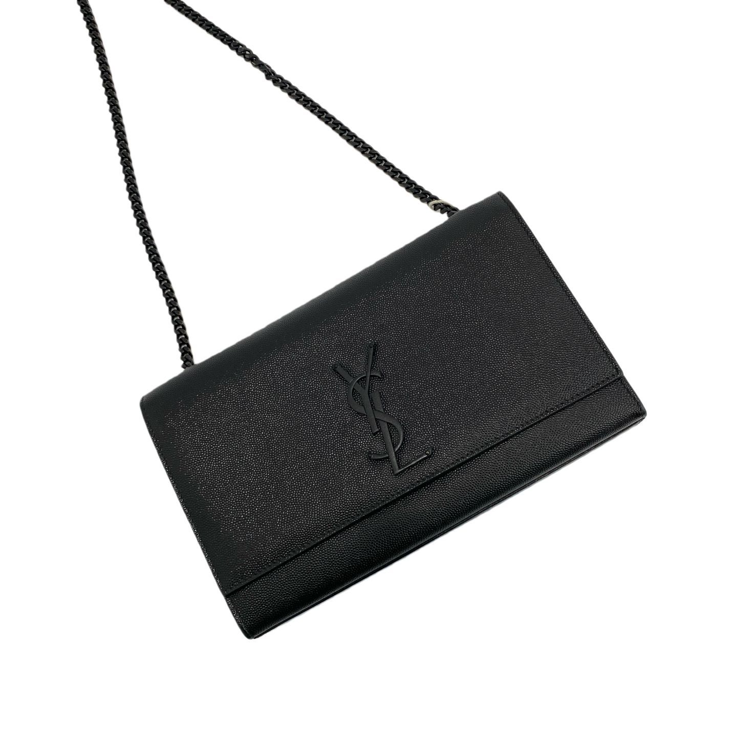Yves Saint Laurent Medium Kate Grain De Poudre Embossed Leather Monogram Crossbody in Black w/ Black Hardware